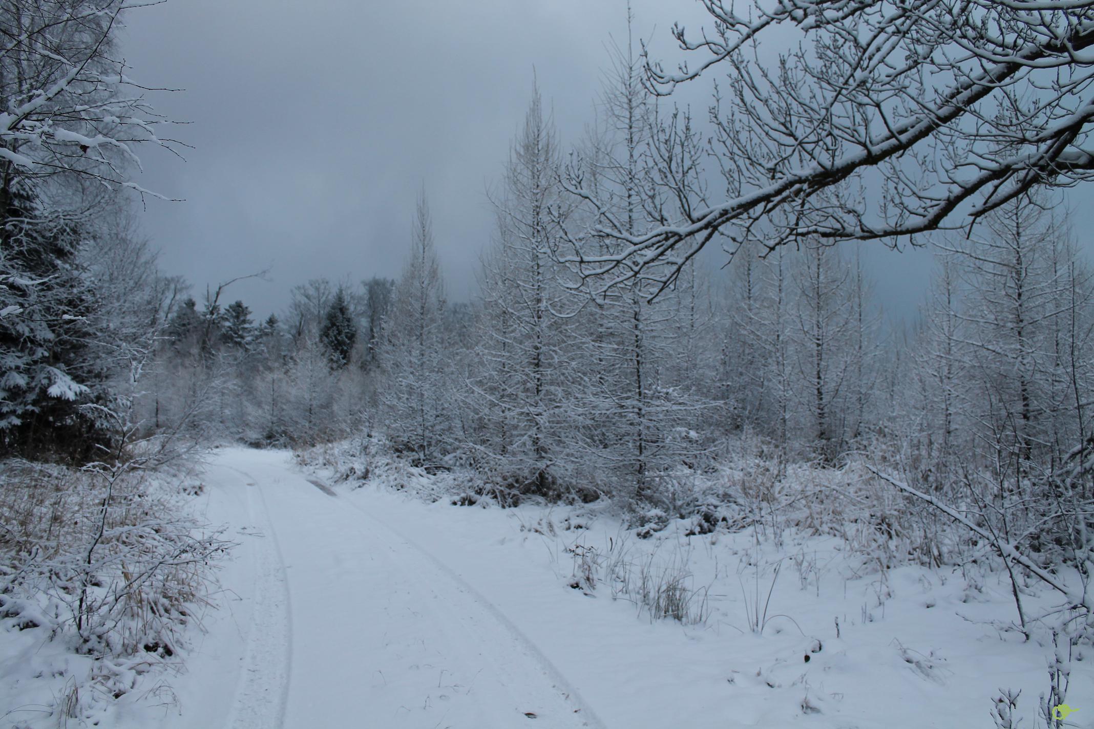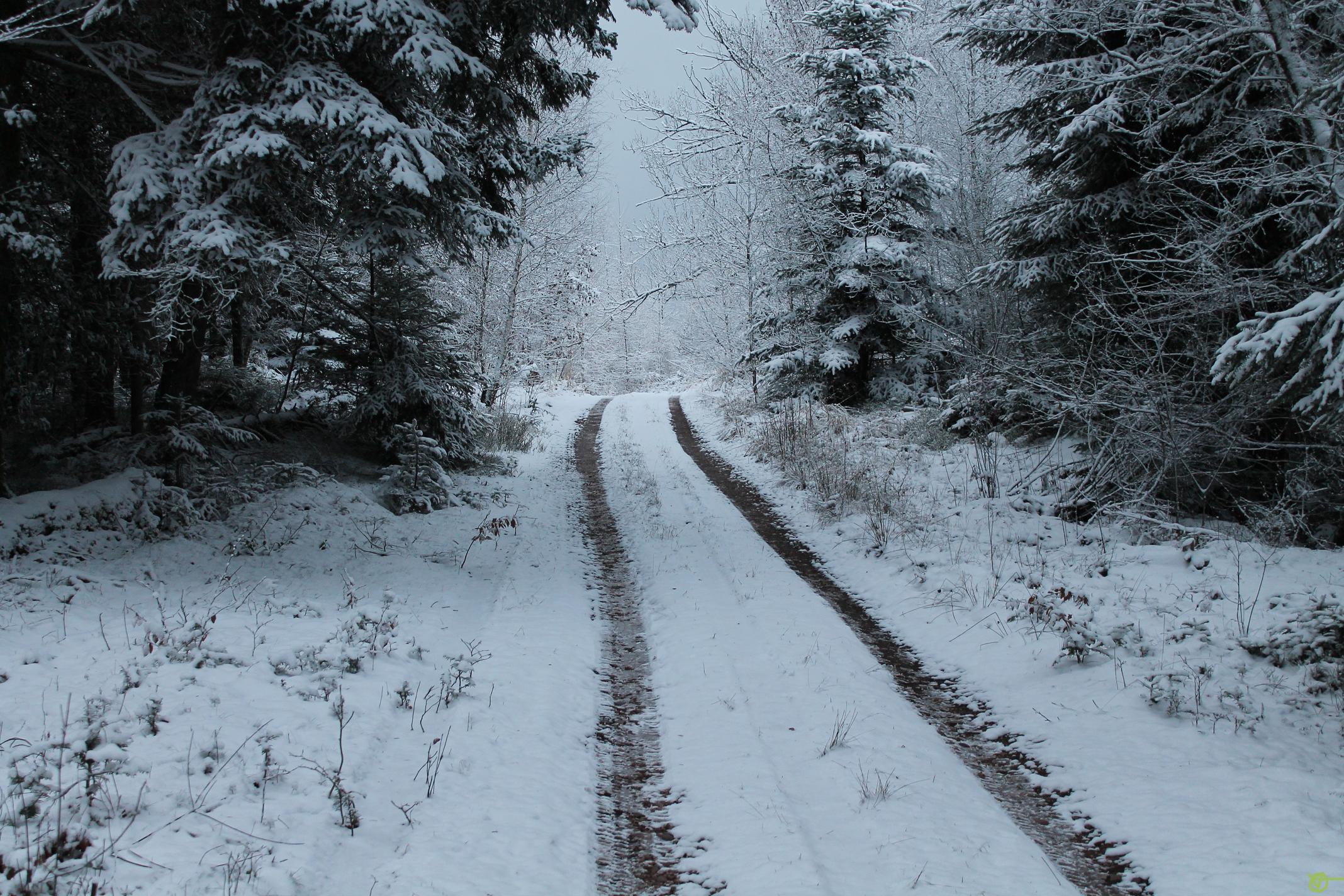 Voilà fin de la route forestière, nous prenons à droite vers de petits sentiers très effacés par la neige, c’est le début de la grande aventure périlleuse.
